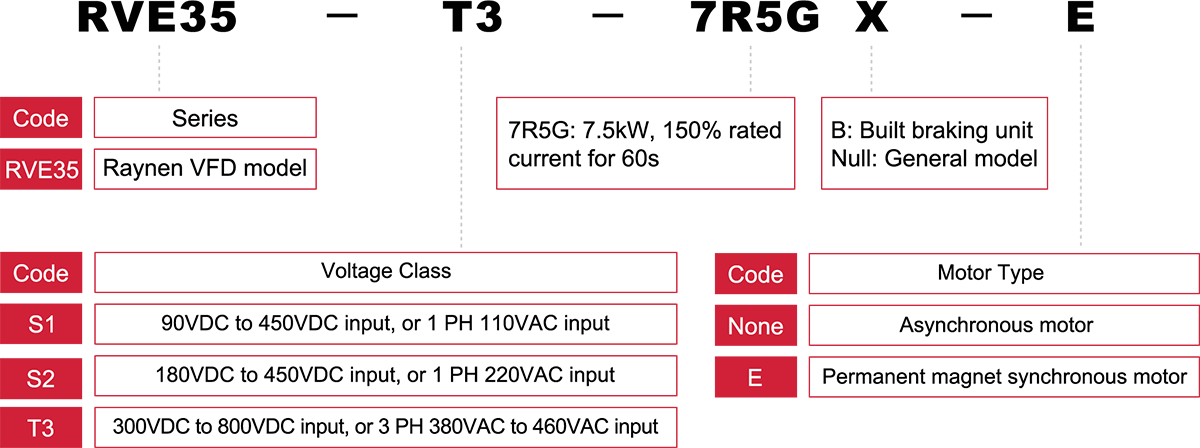 | RVE35-T3-0R7GB | 2,5/3,7 | 0-380/440 | 0.75 | 187*86*152 | 540/660 |